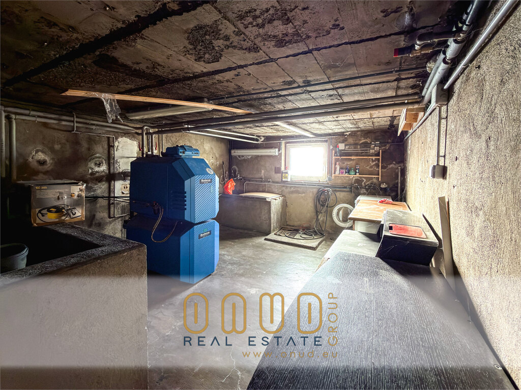 Le sous-sol, offre un espace de stockage généreux, ainsi qu'un garage pour un véhicule et un local technique avec une buanderie.